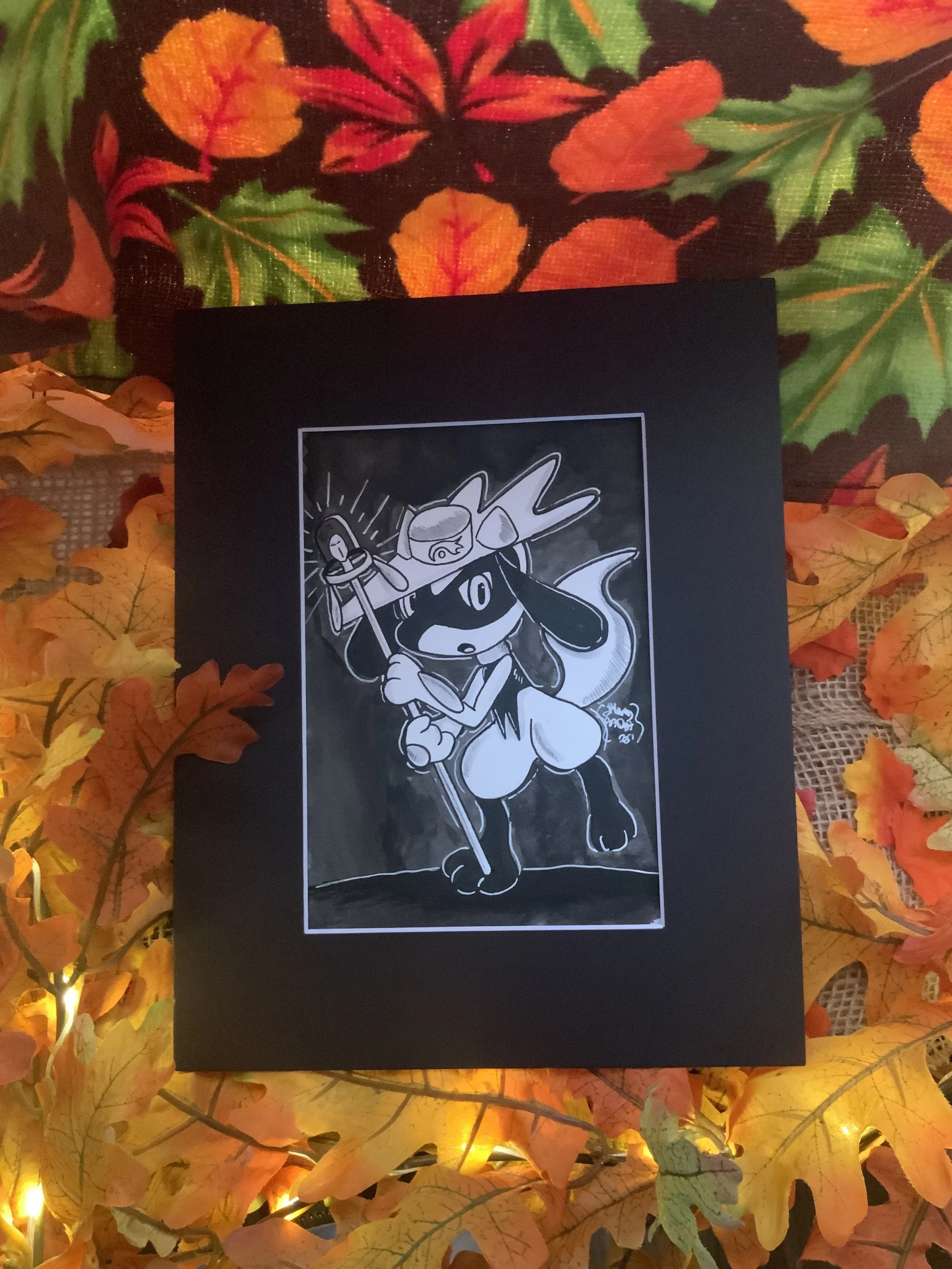 Original character, spooky muse theme day 31, Larvitar pumpkin, ink artwork that comes with the black frame mat one of one 2025